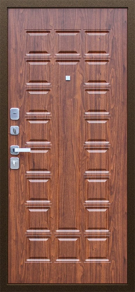 Надежная входная Дверь Спартак Орех темный премиум класса по цене 34 330 руб. Большая толщина стали защитит от проникновения в ваш дом, квартиру или коттедж. Используется очень качественная фурнитура: замки, цилиндры, ручки, защелки. Покрытие и отделка двери изготовлено под внимательным контролем производителя. Дверь имеет долгий срок службы и гарантию.