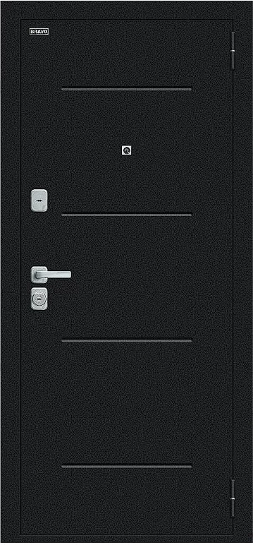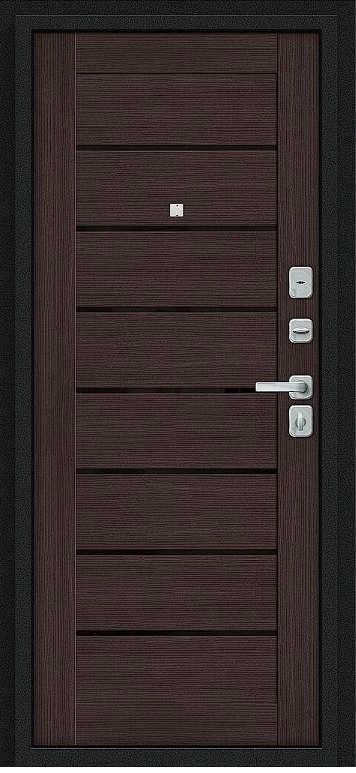 Надежная входная Дверь Браво Техно/BChrome Букле черное/Wenge Melinga премиум класса по цене 35 130 руб. Большая толщина стали защитит от проникновения в ваш дом, квартиру или коттедж. Используется очень качественная фурнитура: замки, цилиндры, ручки, защелки. Покрытие и отделка двери изготовлено под внимательным контролем производителя. Дверь имеет долгий срок службы и гарантию.